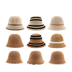 Cappello di paglia a punto tessuto da donna per la protezione solare cappelli da spiaggia estivi cavi traspiranti cappelli da mare dolci all'ingrosso